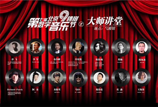 第七届北京·九棵树数字音乐节大师讲堂共计10天,8场讲座,13位大师,集结了当今音乐产业最具影响力的行业专家:著名音响师金少刚及其团队系统工程师周凤歆、Monitor调音师佐鑫,著名录音师混音师李军,中国一线电影作曲家、流行音乐编曲家、音乐制作人和中国最优秀的爵士小提琴演奏家彭飞,著名作词人、音乐人王海涛,著名音乐制作人/DJ、全球最大电音厂牌 Spinnin’Records 首位中国籍签约艺人冷炫忱,游戏音频设计师陈柏翰,歌手阿朵,苗族芦笙传承人央格里,歌手、音乐制作人马RS,著名音乐制作人、华研签约词曲作者郑楠,以及曾荣获6次格莱美奖和22次格莱美提名、音乐脚步遍及欧美及亚洲地区的最最重量级的国际混音大师——Richard Furch,带来了紧随当前国际国内娱乐媒体前沿动态趋势、涵盖北京现代音乐研修学院音乐科技学院词曲创作、编曲、音乐录音与混音、影视配乐、声音设计、电子&EDM等8个专业方向的精彩专题讲座,对推动行业和教育发展做出了积极贡献。